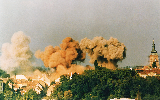 Zrakoplovi Jugoslavenske narodne armije (JNA) 7. listopada 1991. malo poslije 15.00 sati napali su Banske dvore, tadašnje sjedište predsjednika Republike Hrvatske.